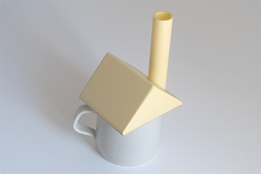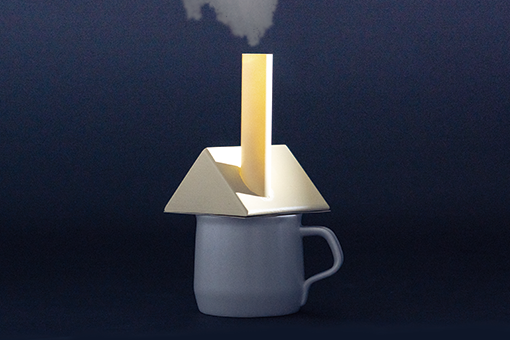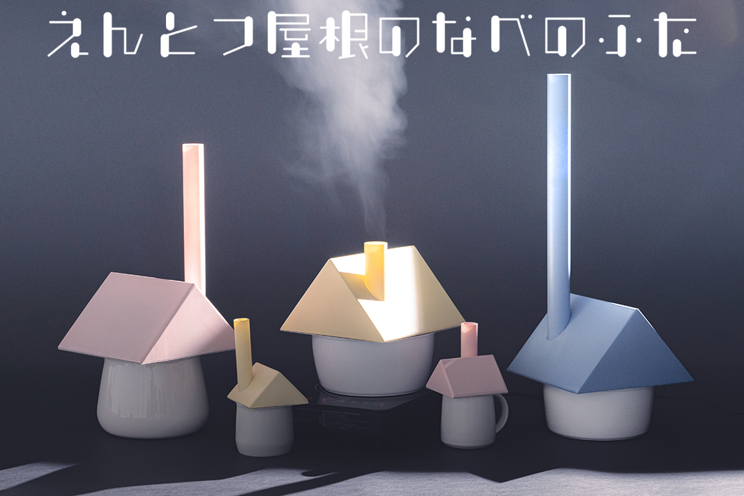 リラックスできるものを考えた時に、リラックスをするために行動をして、ストレスを与えてしまっては本末転倒だなと考えました。なので、日常の生活をしていてリラックスできるようなものを考えました。心のリラックスには、身体を通して、間接的にリラックスを伝えます。なんとなく落ち着くようなものが、心にリラックスを与えられるのではないかと考えました。水が動いている(滝やシャワー、温泉、川、海、噴水)など、では、なんか、落ち着くものがあると思います。そこに注目して、お湯が沸いている現象は、めちゃくちゃ水が動いていると考えました。けれども、お湯を沸かしている時は、沸騰するまで、離れたり、スマホを見たりしています。少しでも、動く水の近くにいる時間を長くする事で、知らぬ間に心がリラックスできてるものを提供したいです。その中で、お湯が沸くのは小さい頃からの現象で、窓辺のキッチンで母が料理をしているのが懐かしい光景です。その家達はいろんなところから煙が出ていて帰りたくなる光景です。そんな心の中にある記憶にもアプローチしたいと考えました。小さい頃に積み木で三角を重ねて家を作っていました。そんな小さい頃の本能的な動きで生じた行動は、鍋のふたの煙突からは煙が出るようになります