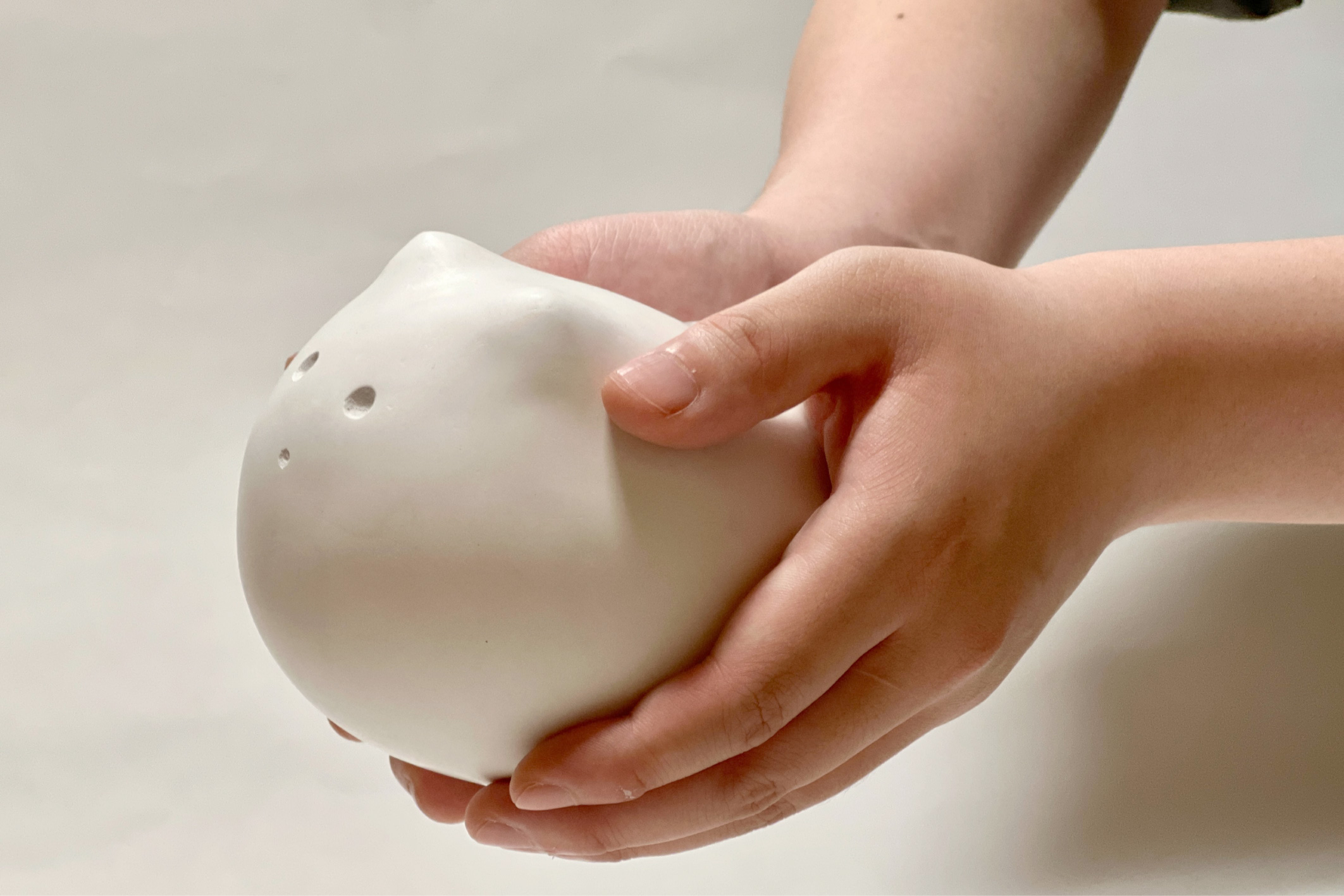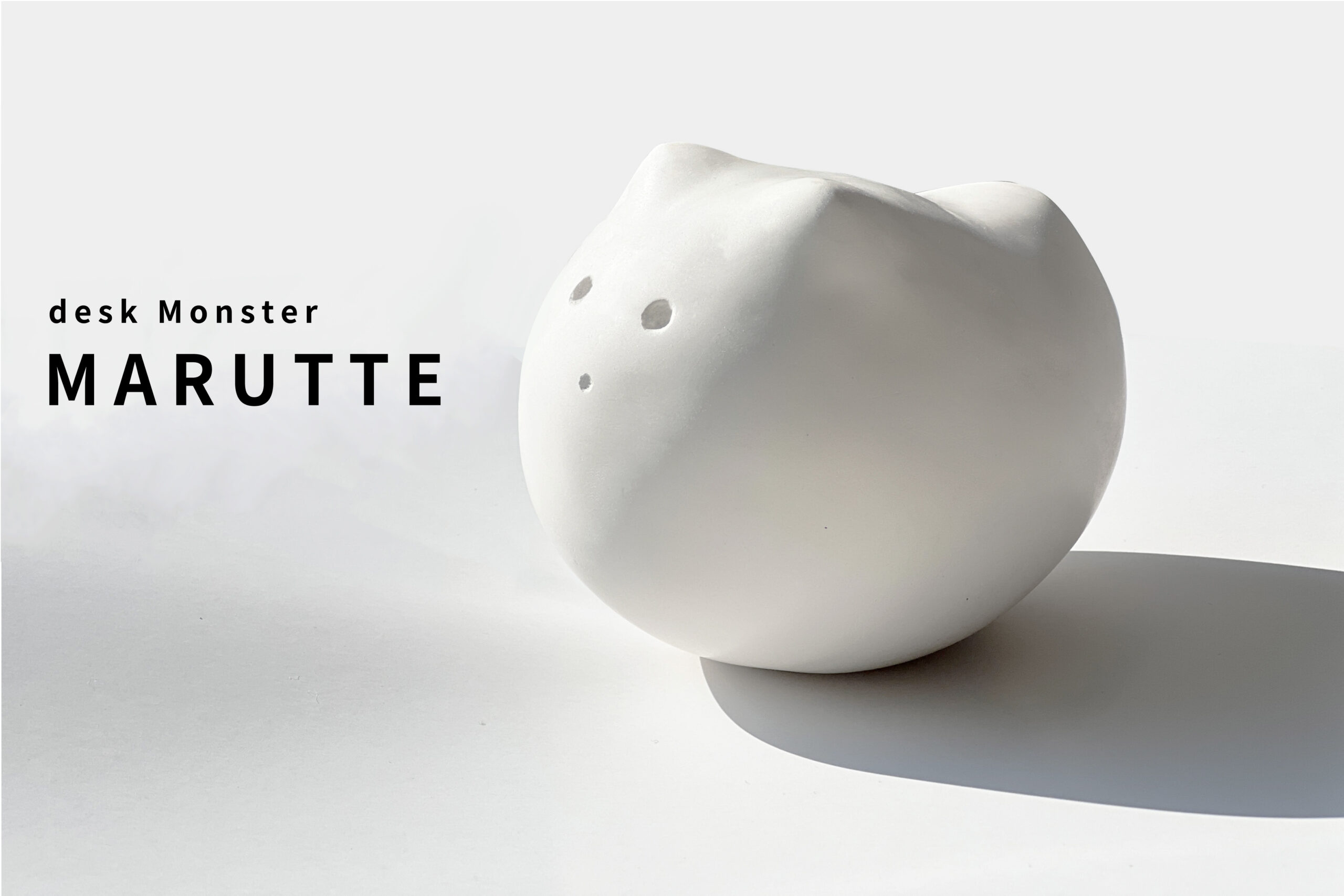 ポールの先端の丸みや三角コーン丸み、新幹線の座席の握りの丸み。これらの丸みは理由もなく、なぜかついつい触ってしまう「丸み」、「丸み」にはどこか触りたくなる魅力と癒しがある。「MARUTTE」そんな丸みをデスクワークにも、と思い制作したまんまるなモンスターです。デスク上にまるってを置き、休憩中なんか触りたくなってしまうそんな生き物になってます。ペットのような愛くるしさもあり、「愛でる」という癒しも。デスクワークで疲れた際なんとなくまるってを手に取り極上の丸みを堪能してみるのはどうでしょうか。