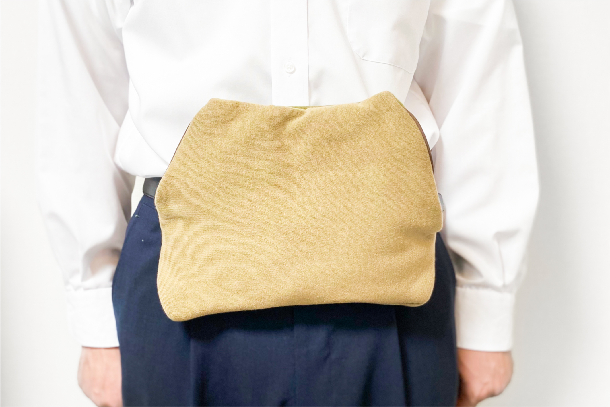 電通社員のみなさま、大事なプレゼンや、偉い人との会議は、オンライン上でも緊張しませんか? 今回は、そんなあなたに緊張を和らげる癒しグッズをご紹介いたします。 こちら、『ふかふかポケット』です。 みなさん、ポケットに手を突っ込んだ経験、ありますよね? 実はそれ、不安を解消する行為なんです。ポケットに手を突っ込むことで、手が包まれ、リラックスできると言われています。 「じゃあもともと付いてるポケットでよくない?」とお思いのそこのあなた。この『ふかふかポケット』はただのポケットではございません。 名前の通り、ふかふかしていて、中は裏起毛。パーカー、ジャージ、キルトと、それぞれ気持ち良い手触りの素材で作られています。 また、パーカーについているような形にすることで、自分の手に触れる、”セルフタッチング” ができます。これをすることで、オキシトシンが分泌され、リラックスに繋がると言われています。 触り心地の良さに特化した『ふかふかポケット』。 いわばこれは、”手のお布団” なんです。 座りながらでも手を突っ込めて、ベルトに付けたりクッションに付けたり、お好きな場所に付けられます。 これで大事なプレゼンや会議も、バレずにポケットに手を突っ込みながら、リラックスして挑みましょう!!