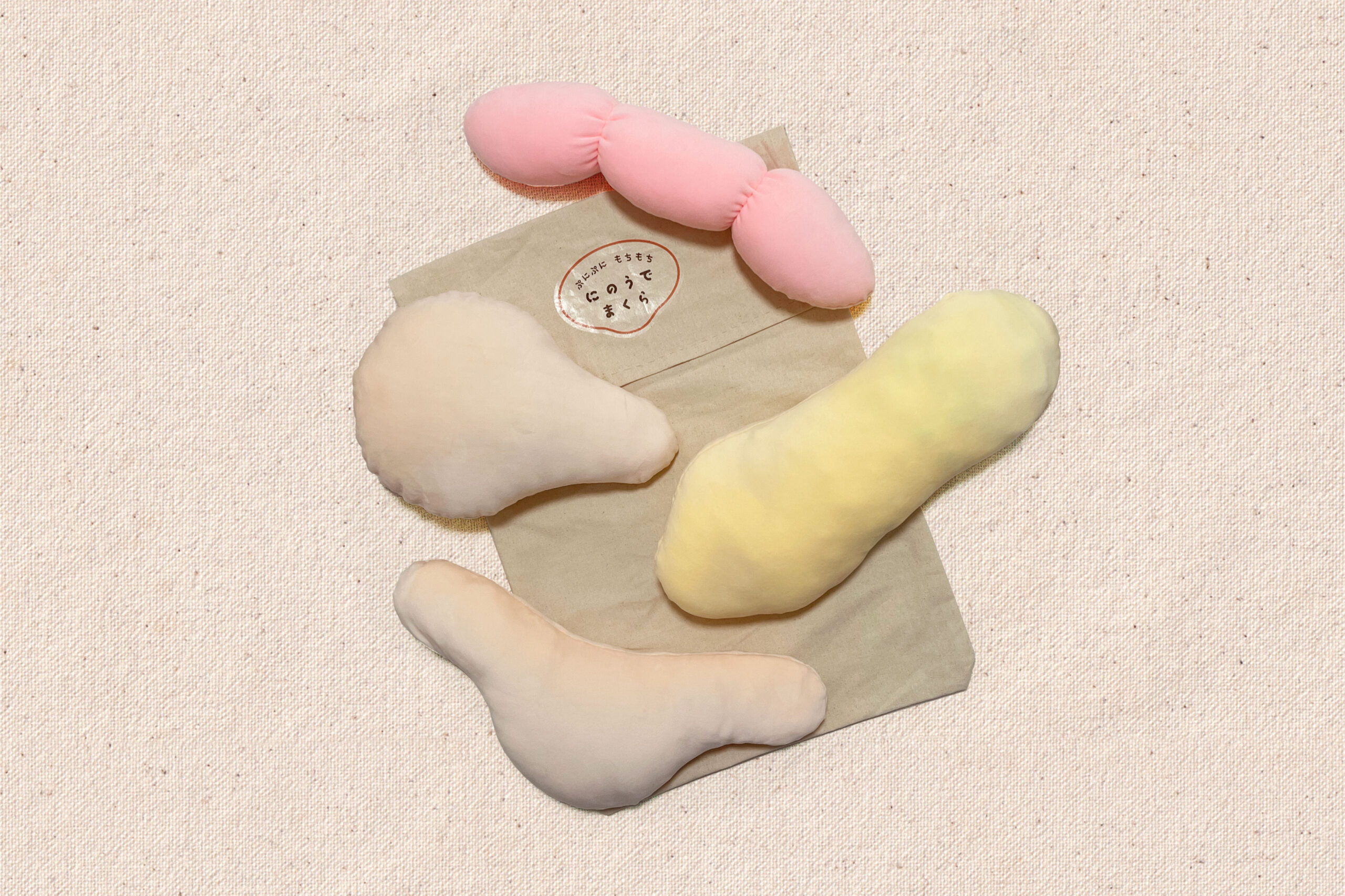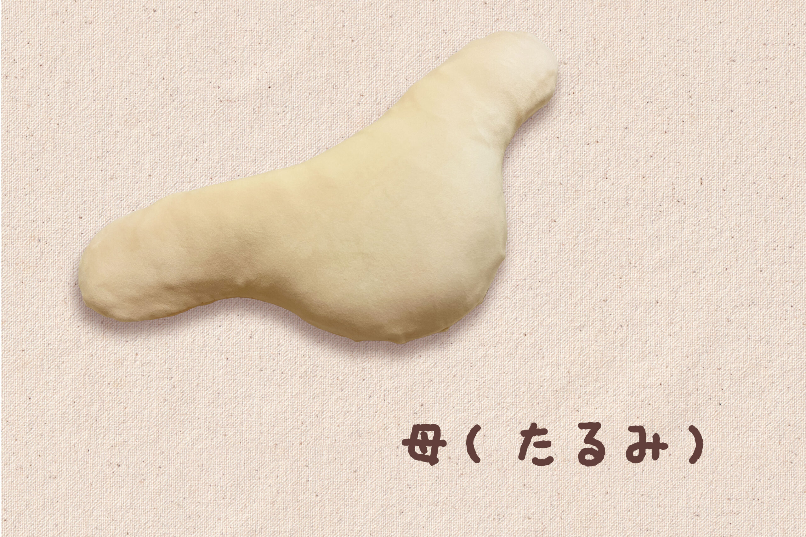 二の腕の質感や形を模したクッションです。母の柔らかくて少しひんやりしている二の腕が好きで、できればずっと触っていたいという個人的体験と願望から掛け合わせて発想しました。コロナ禍でのリモートワークで人と出会う機会が減ったため、少しでも人肌を感じつつ、かつリモートワークをサポートできるアイテムです。触りたい、触ってみたい二の腕から「あかちゃん、母(たるみ)、母(上腕)、おすもうさん」の4種類を作りました。腕枕の代わりとして、PC作業の手首置き、手持ち無沙汰な時に触る、などの用途で使うことができます。また使わない時は、枕カバーをイメージした袋にまとめて入れることで、一つの枕になります。