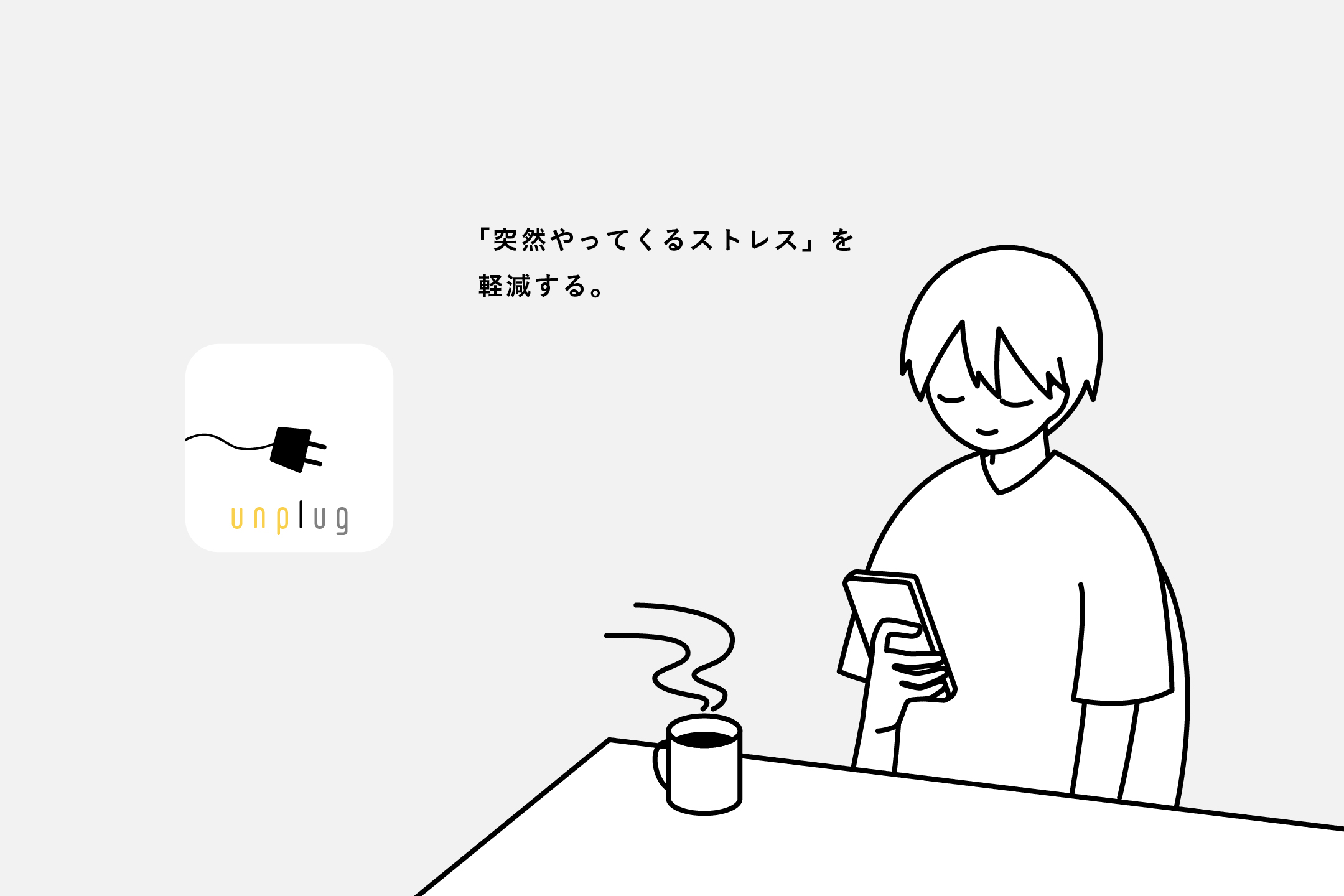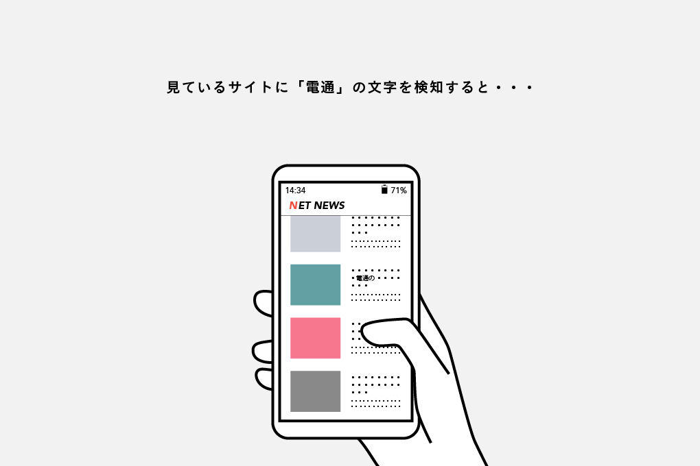 (ご提案のみとなります。実物はございません。)仕事のためや情報収集はもちろん、仕事の合間の休息にも利用するインターネット。今は新聞の代わりにニュースサイトをチェックされる方も多いと思います。そんな時にふと目に入るのが、電通のあることないことが書かれた記事や文章。別の話題について調べていたり、休息として見ていたところに突然飛び込んでくる会社に関する嫌な話題は、ストレスになってしまいます。unplugはそんな、インターネット上で「突然やってくるストレス」を軽減するソフトウェアです。見ているサイトに「電通」の文字を検知すると画面が切り替わりそのサイトが見えなくなり、タップすると再び見ることができます。一度見えなくなることで心を落ち着かせたり、今見るか見ないかを判断する時間を作ります。仕事をしている上でどのようなことが書かれているかを見る必要があっても、少し間を置くことで気にしない気持ちで見る、または「今の時間は見たくない」をしっかり自覚し、一時的に見ないようにすることでストレスの軽減を図ります。世間の中での会社の話題に目は背けられないけれど、準備する時間はあってもいい。仕事じゃない時間くらいは一旦パスしてもいい。インターネットから受けるストレスをちょっぴり減らして、有意義な時間を。